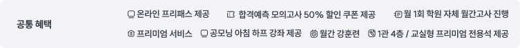 ■ 학원실강프리패스 자율형X독학반 : 공단기 노량진 학원 단과 실강공단기 온라인 프리패스 독학반 전용자습실이용 기타 추가 혜택