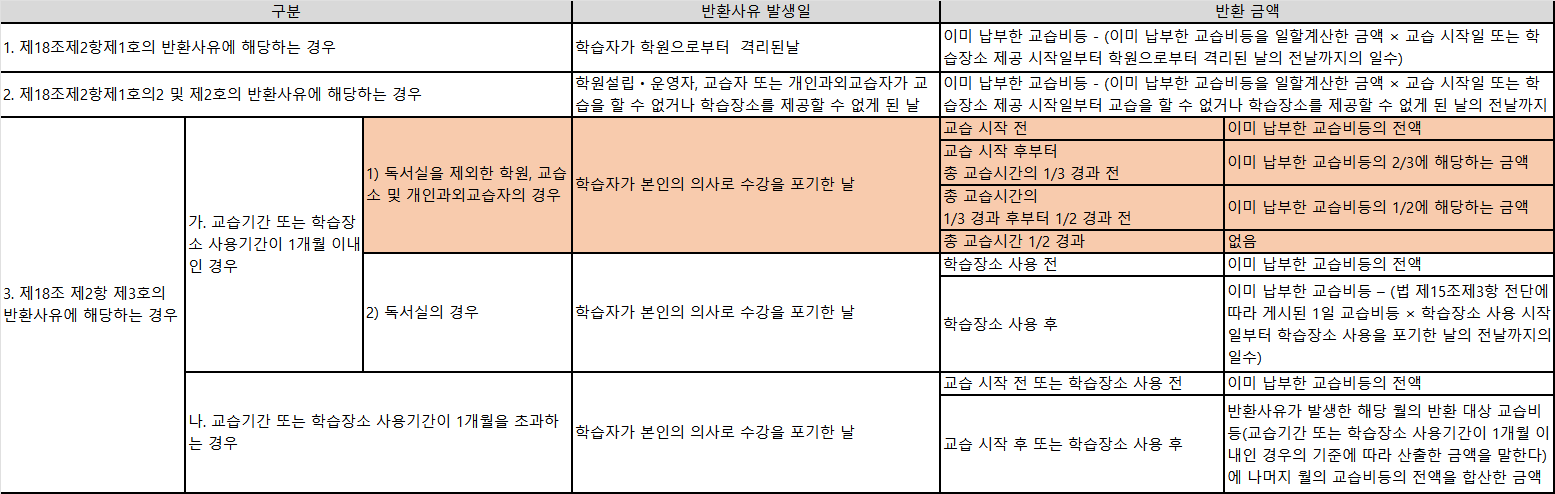② 전용 자습실(관리형) ▶ 판매가에서 관리프로그램 독학상품 할인율 적용하여 공제, 1일 교습비등x학습장소 사용 시작일부터 학습장소 사용을 포기한 날의 전날까지의 일수