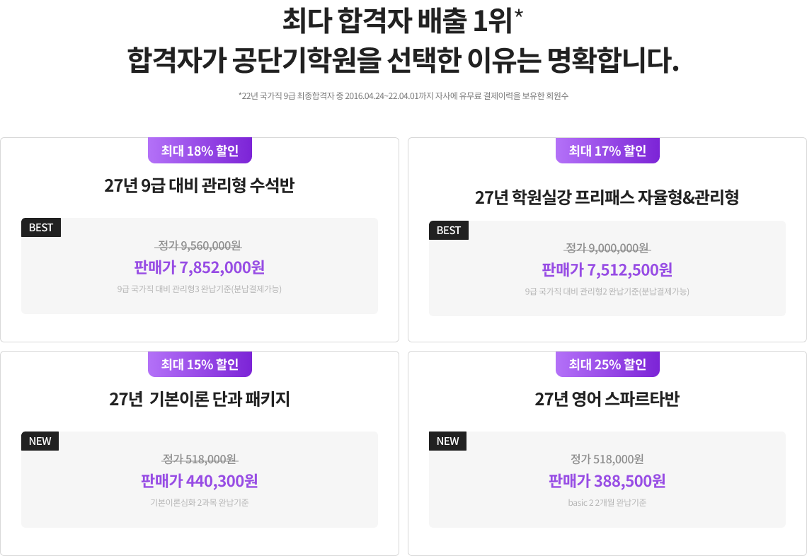 이벤트 참여자 대상 공단기 노량진학원 학원 실강 프리패스 할인 쿠폰 지급