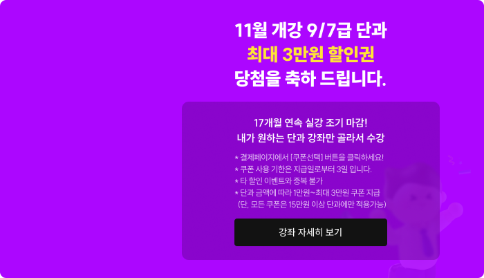 11월 시작 초심자 │ 마감 주의! │ ★최대 72% 할인★