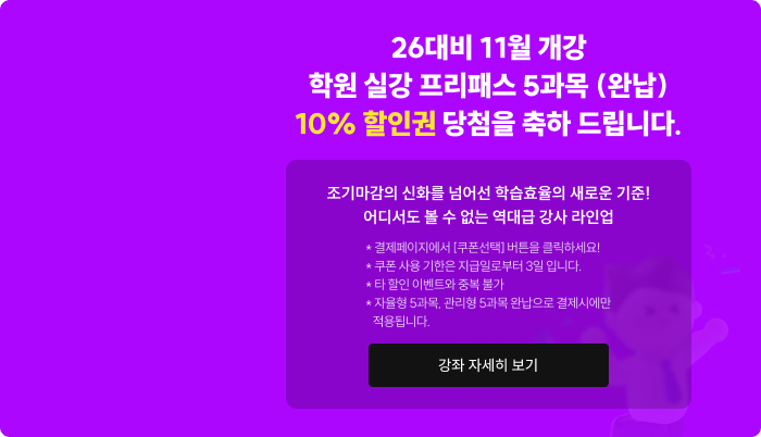 [11/22(토) 개강] 최대 30% 할인ㅣ26.1월 본고사 대비 압축/문제풀이