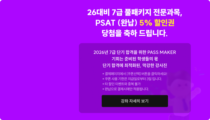 7급 PSAT 합격의 모든 것이 준비된, BEST CHOICE!