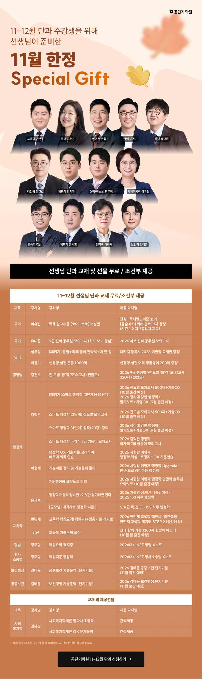 [이벤트] 11-12월 단과 수강생을 위한 선생님의 스페셜 선물!